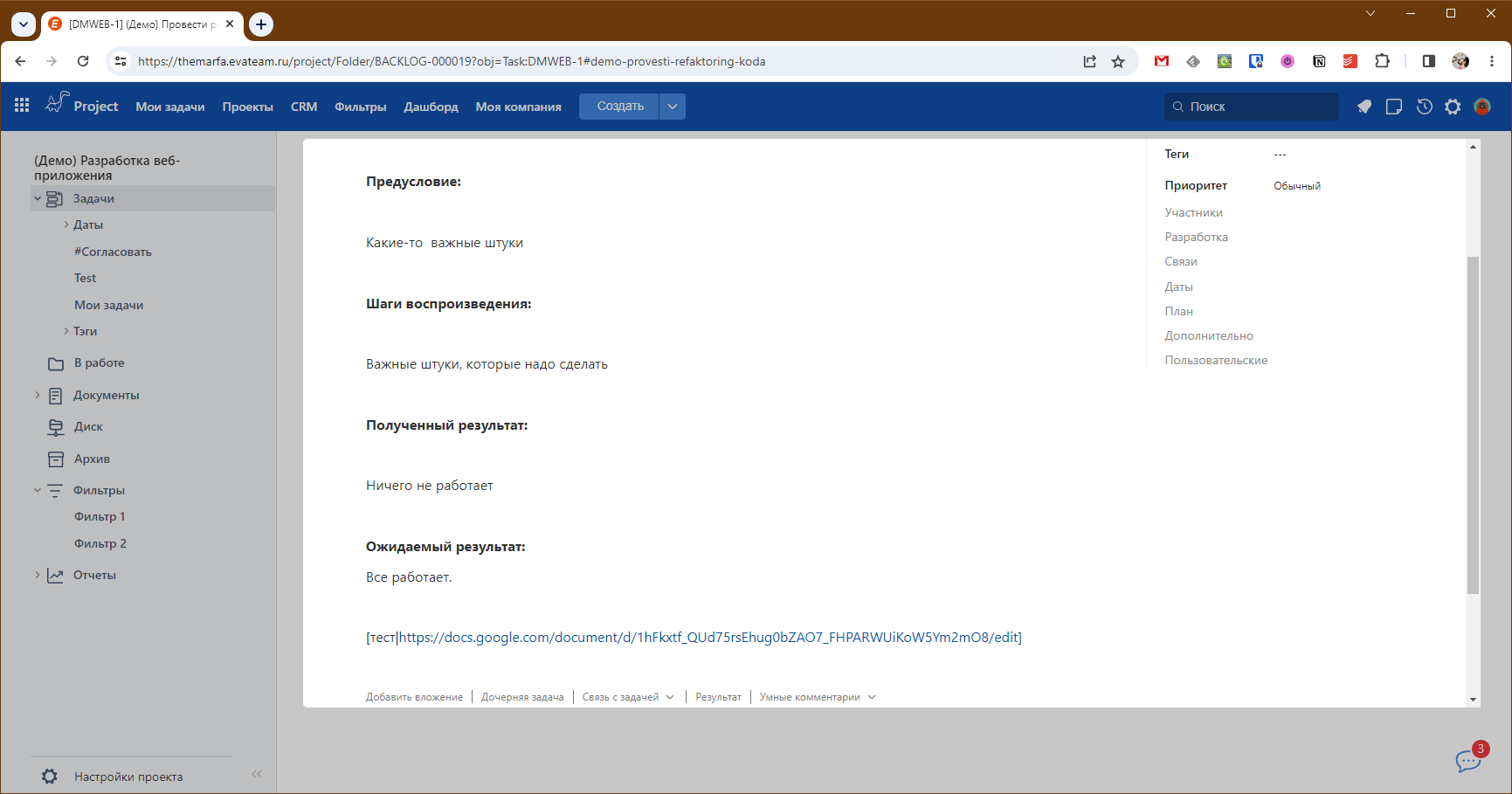 Я работаю тестировщиком в компании, которая сейчас использует решения Atlassian. У меня немного фильтров, и все они выглядят примерно так: «status in (Open, In Progress, Reopened, Resolved, Testing, In Review, need info, wait, Dev to Prod) AND assignee in (currentUser)) ORDER BY updated DESC». Я без труда создал аналогичный фильтр в EvaProject.