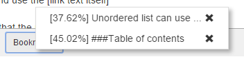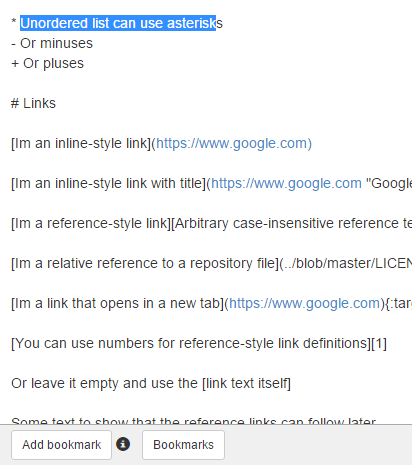 Чтобы добавить закладку, нужно выбрать текст и нажать Add bookmark, а при нажатии на Bookmarks откроются все закладки. При клике на закладку будет открыта заметка в выбранном вами месте: