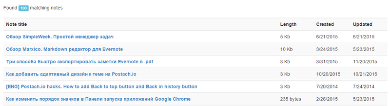 После чего сервис выдаст заметки по запросу:
