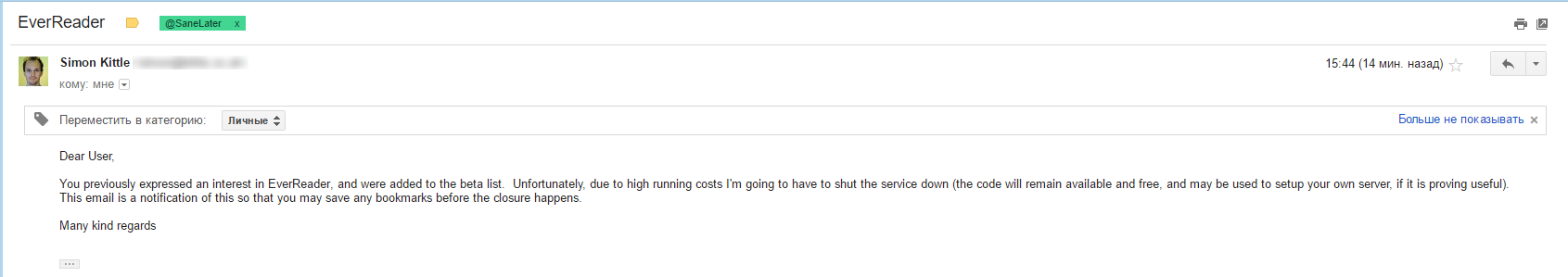 Сервис закрыт. Однако, весь исходный код доступен и вы можете установить EverReader на свой сервер.