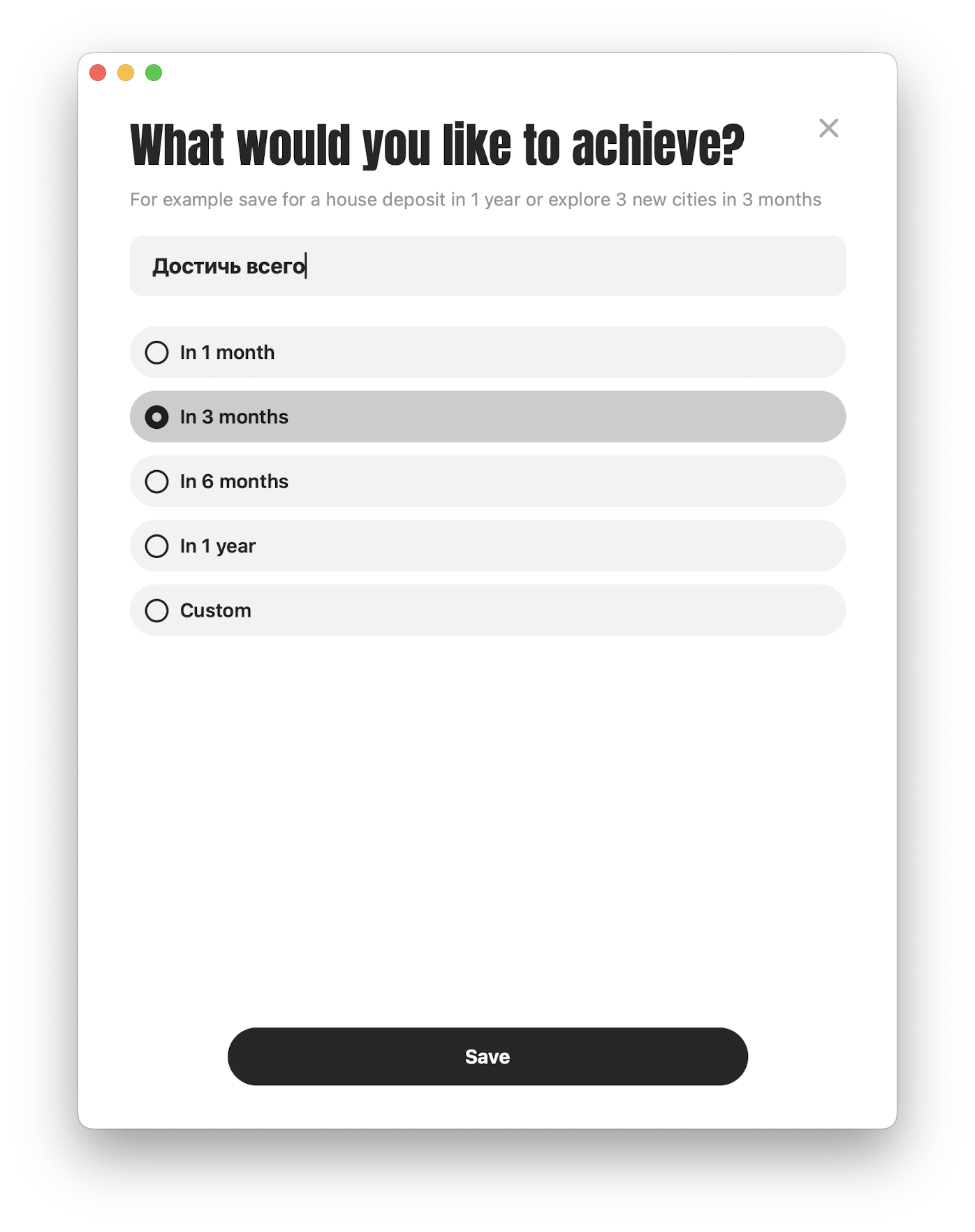 Немного странная вещь. Здесь можно указать цель и срок выполнения в месяцах или с кастомной датой.