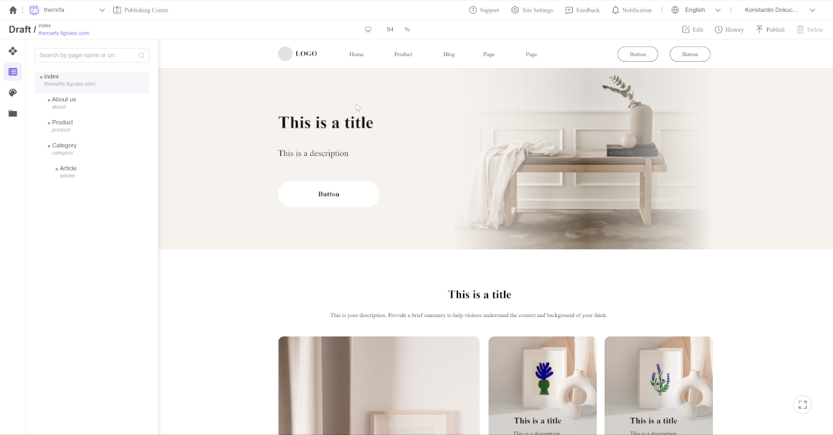 У FigCube определённо есть свои проблемы, но практически все они связаны с ранней стадией разработки сервиса. Часть элементов отображается на китайском языке, и в целом не хватает количества шаблонов сайта и отдельных секций. Также я не нашёл возможности добавлять собственные стили, код и встраивать сторонние элементы.