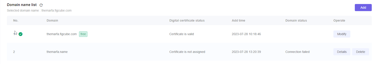 В настройках домена можно управлять вашими доменами в зоне figcube.com, как и привязать свой собственный домен.