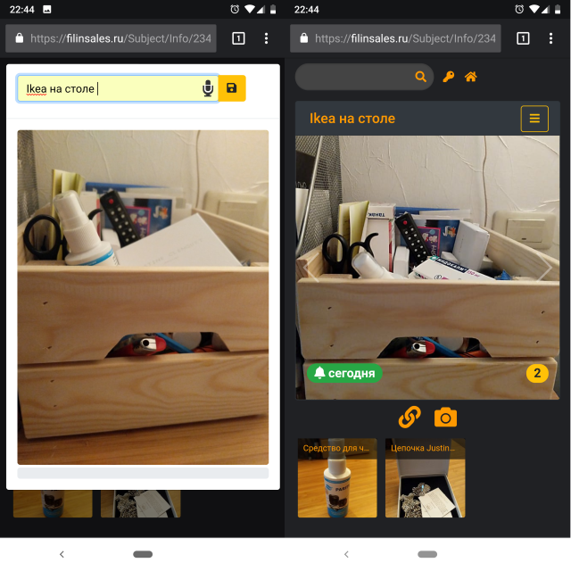 Можно сделать и наоборот. Вам интересно, что лежит в шкафу? Откройте фото шкафа, и внутри вы увидите весь список вещей с их фотографиями.