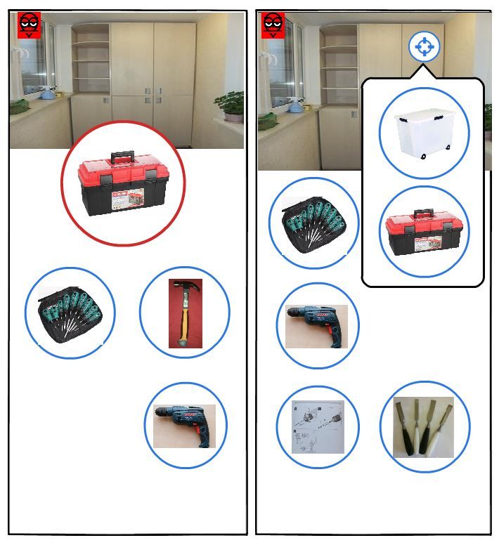 Так нужно проделать со всеми местами хранения и вещами, которые вы хотите контролировать. Затем, если вам понадобился, например, шуруповёрт, вы вводите в поиск ключевое слово, и получаете фотографию места хранения.