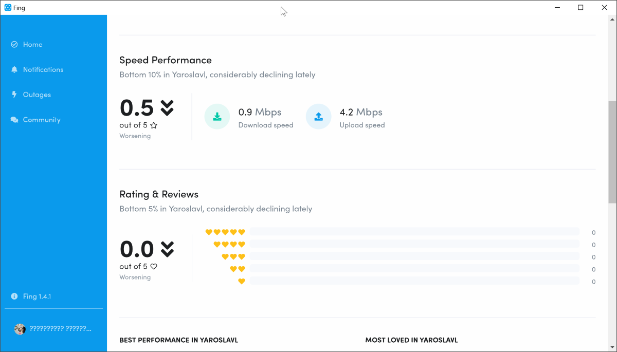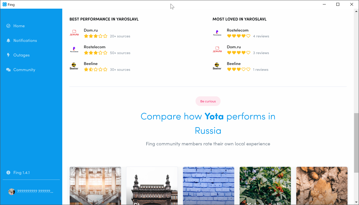 Сравнение с другими провайдерами работает не так хорошо. Хотя это и зависит от числа пользователей Fing в вашем конкретном городе.