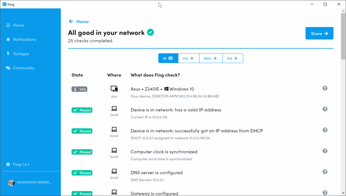 В зависимости от типа, Fing прогонит ещё пару тестов и выдаст полный отчёт.