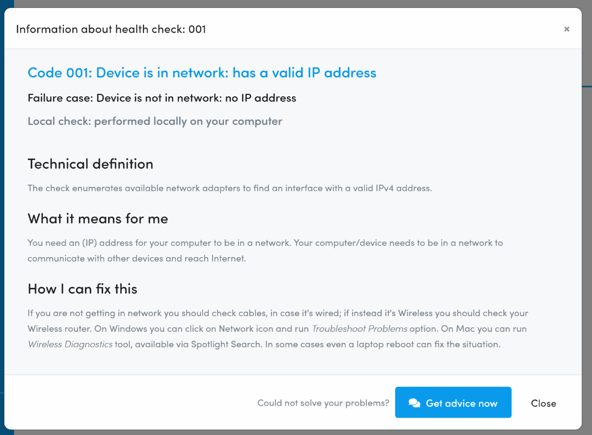 Если вы не можете самостоятельно исправить проблему, можно нажать кнопку «Get advice now».
