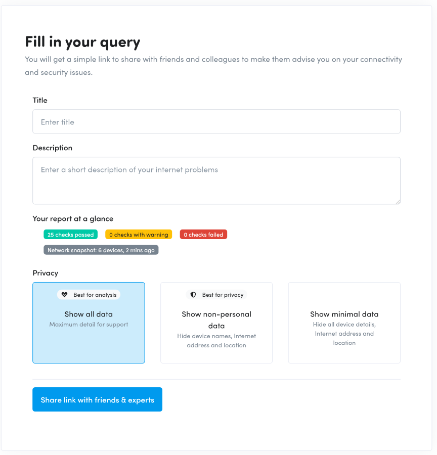 Приложение проводит десятки различных проверок на каждый этап соединения. Среди них есть данные о самом устройстве, IP-, DHCP- и DNS-адресах, статус соединения с основными службами и данные о падениях сети провайдера.