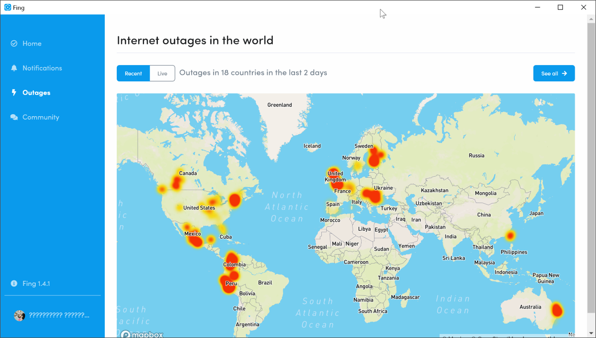 Карта поделена на два раздела: недавние падения и прямой эфир. В любом случае можно увидеть, в каких странах и даже городах наблюдаются проблемы с доступом в интернет.