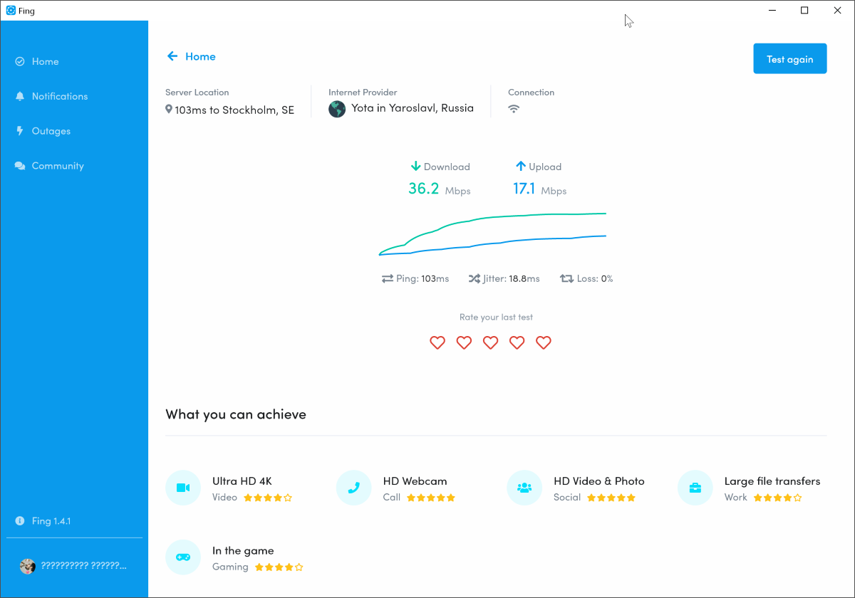 С другой стороны, Fing показывает, какие действия вам доступны с текущей скоростью. Например, у меня будут небольшие проблемы со стримингом 4k и передачей тяжёлых файлов.