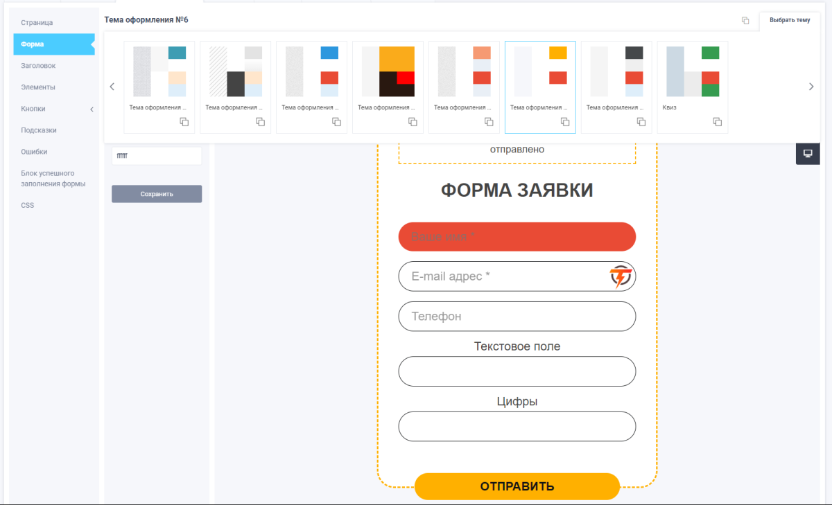 Можно настроить дизайн каждого поля в отдельности или выбрать одну из нескольких цветовых палитр.
