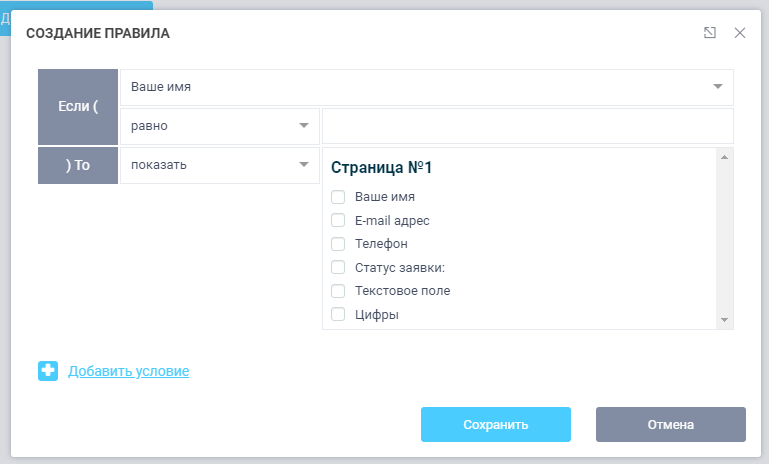 - Правила для полей формы (добавление или скрытие отдельных элементов в процессе заполнения, автозаполнение);