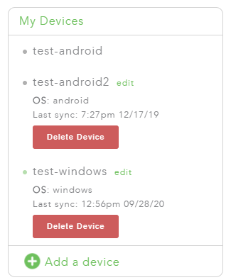 Установленный на устройстве клиент будет отображаться в разделе My Devices. Здесь можно переименовать или удалить устройство, посмотреть дату последней синхронизации.