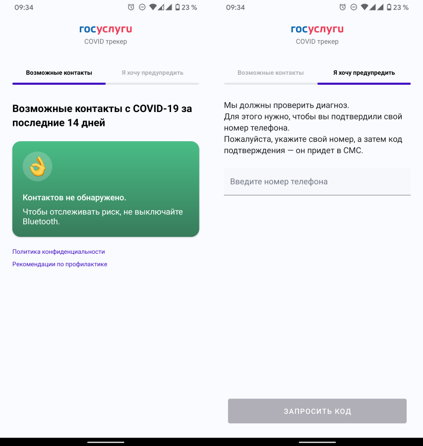 Госуслуги.COVID трекер отслеживает ваши контакты и оповещает вас, если среди них есть больной или недавно переболевший COVID-19.