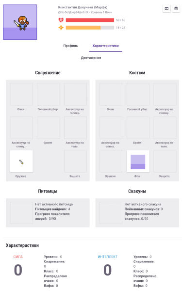 В профиле персонажа можно отслеживать его статы, достижения, управлять инвентарём и заниматься прочими привычными для игр вещами.