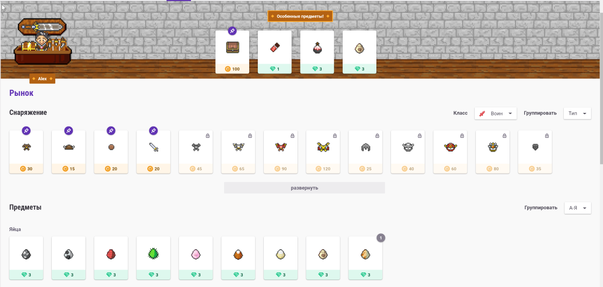 В разделе Лавки можно закупиться снаряжением, расходниками, питомцами и прочими полезными предметами.
