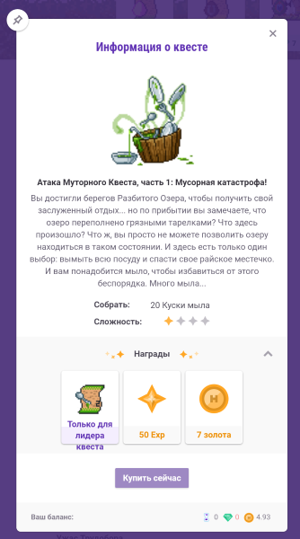 К сожалению, из описания квеста ровным счётом ничего не понятно, что от вас потребуется для его выполнения. Но это только на первых порах, пока вы ещё не привыкли к миру Habitica. Со временем вы будете легко понимать все условия.