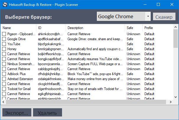 Как следует из названия, этот инструмент помогает просканировать плагины и расширения браузера. Это нужно для массового удаления или переноса выбранных плагинов в другой браузер. Опять же речь идёт только про браузеры на одинаковом движке.