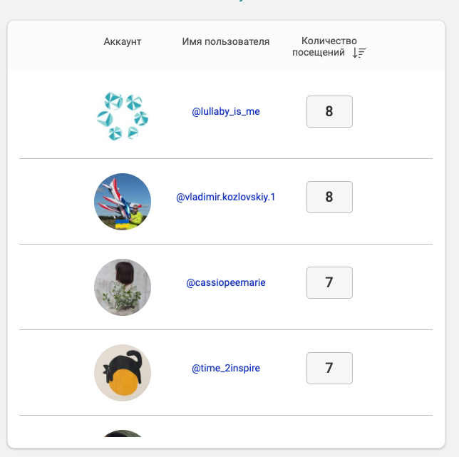 Кто и как часто просматривал отслеживаемый аккаунт, но не подписался на него.