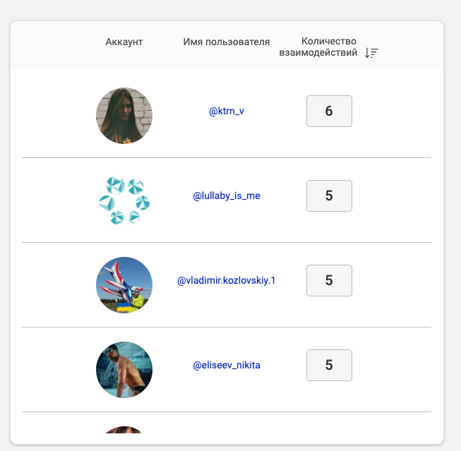 Очень интересный раздел. Здесь можно увидеть, какие аккаунты (подписчики и нет) часто взаимодействуют с постами цели. Если человек проявляет высокую активность, то он явно заинтересован, а значит, попадает в этот раздел.