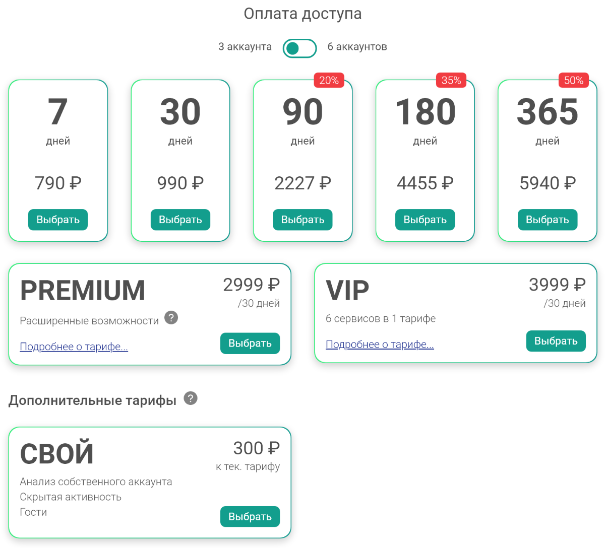 Тарифы Premium (2 999 рублей в месяц) и VIP (3 999 рублей) добавляют больше возможностей. Premium даст: