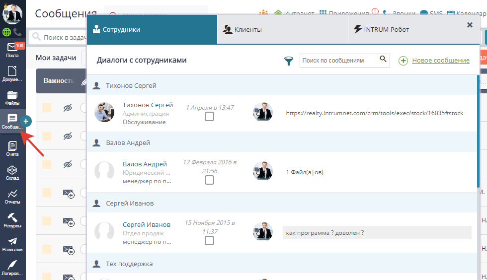 Также в INTRUM можно создавать почтовые и SMS-рассылки.