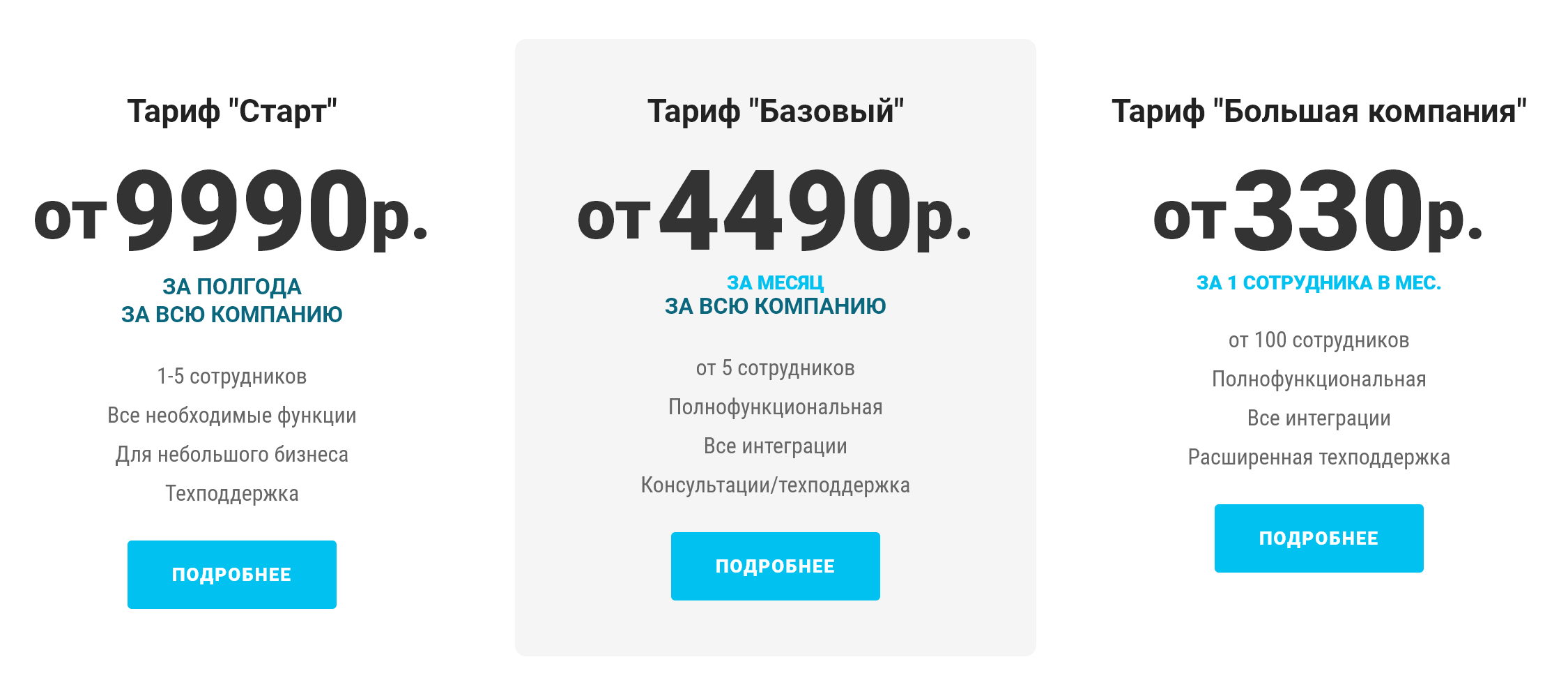 Стоимость системы зависит от количества сотрудников, а функции вы выбираете самостоятельно. Небольшим компаниям INTRUM обойдётся в 9 990 рублей — за полгода. Крупным придётся платить от 330 рублей в месяц за сотрудника.