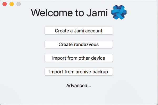 После того как программа установится, её можно запустить нажатием на значок Jami. Затем следует создать учётную запись. Также есть возможность восстановить резервную копию учётки, если она у вас уже есть.