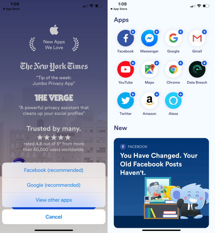 Jumbo — приложение для быстрого управления настройками приватности в социальных сетях.