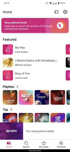 В мобильной версии KaraFun вас ожидают те же возможности, что и в десктопной версии.