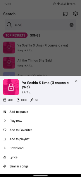 На самом деле я буду очень рад, если кто-то в комментариях предложит более крутой аналог с нормальным каталогом русскоязычных песен.