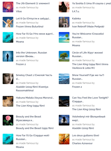 Я выбрал именно это приложение, потому что в нём есть какой-никакой каталог русскоязычных песен. А с полным каталогом можно ознакомиться по этой ссылке.