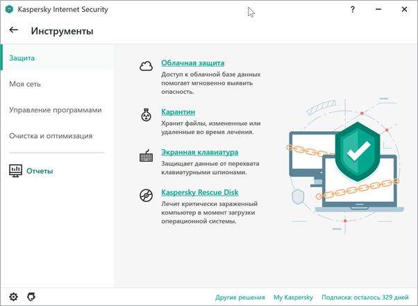 А теперь можно перейти к расширенным возможностям KIS. Их можно найти по кнопке Больше функций. Опять же для удобства я их разделю на четыре пункта.