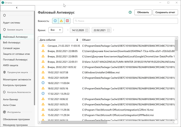 Рассказывать много про этот раздел я не буду. Здесь вы можете посмотреть любые отчёты по работе каждого компонента KIS в отдельности и понять, что же происходит с системой и работой приложения.