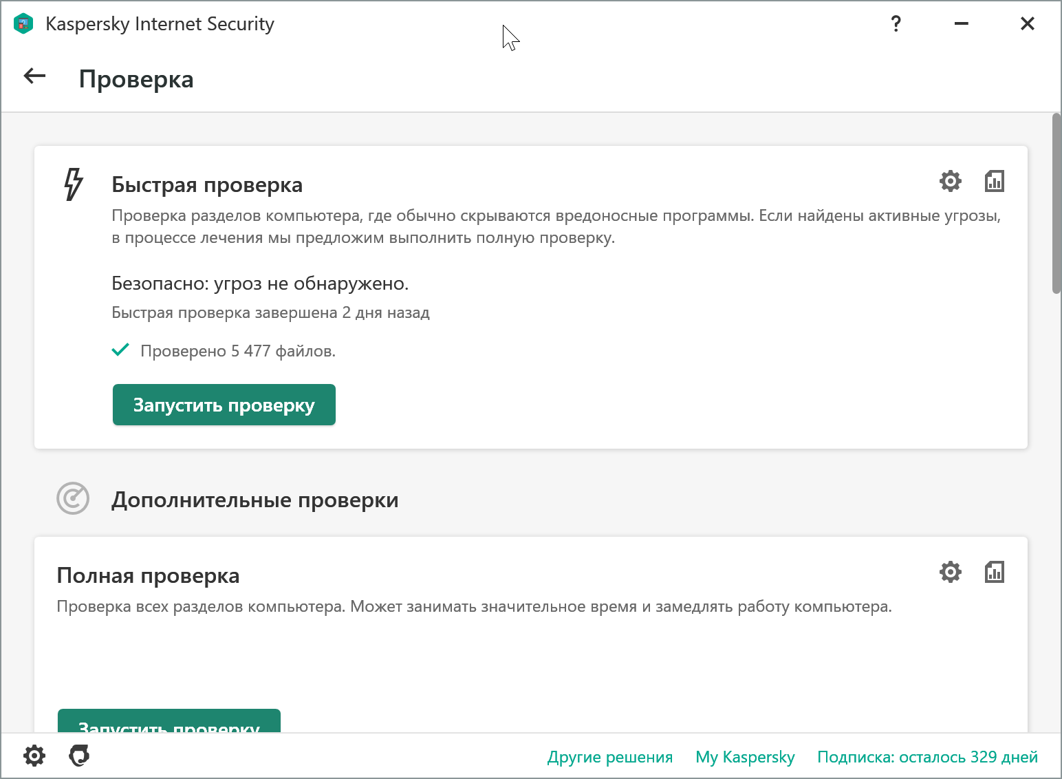 Кроме этого, в разделе Проверка пользователь может самостоятельно запустить проверку на вирусы. Для этого на выбор есть несколько вариантов.