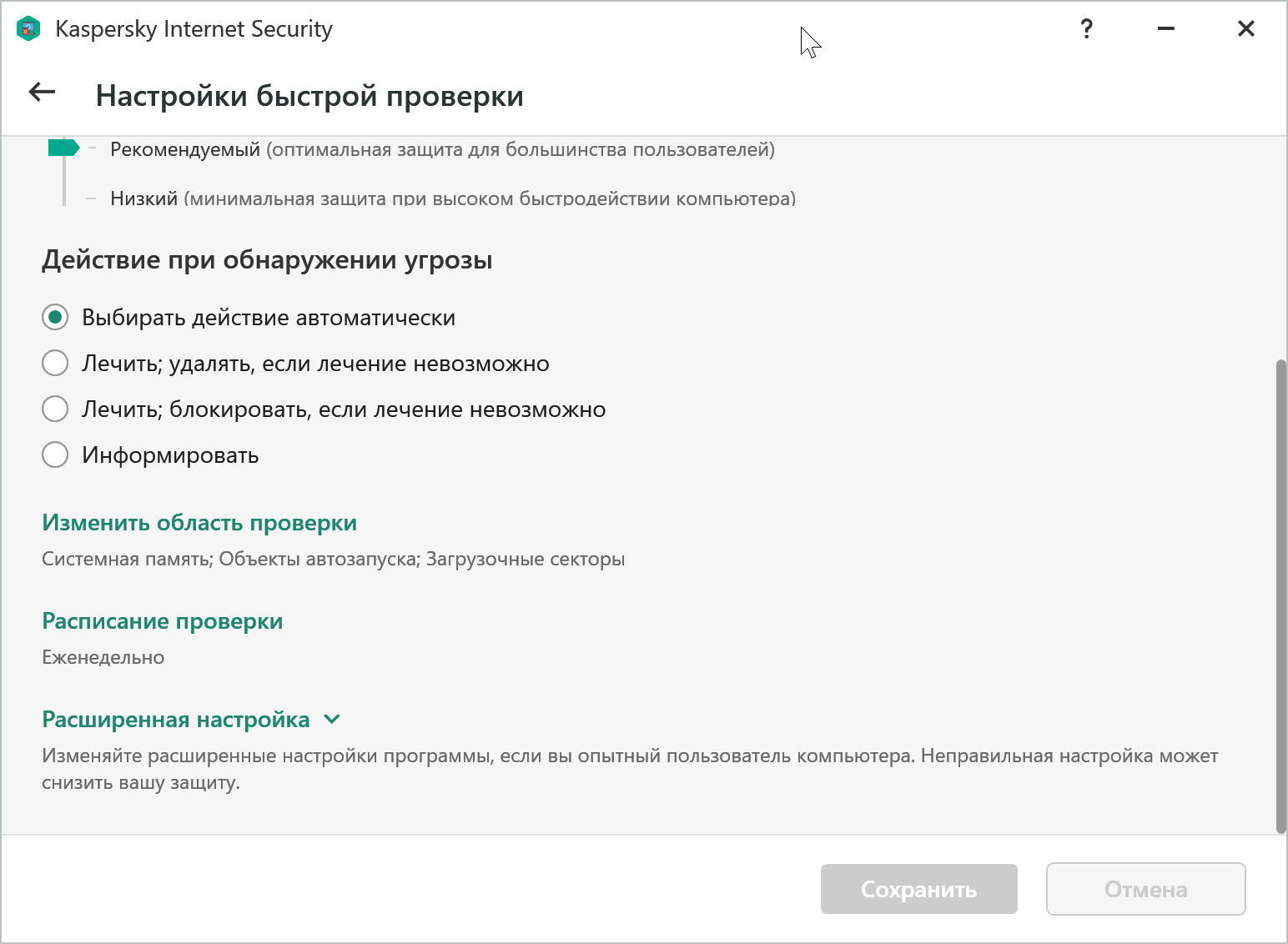 У Kaspersky Internet Security есть и расширенный режим, где опытный пользователь сможет настроить работу программы именно так, как ему нужно.