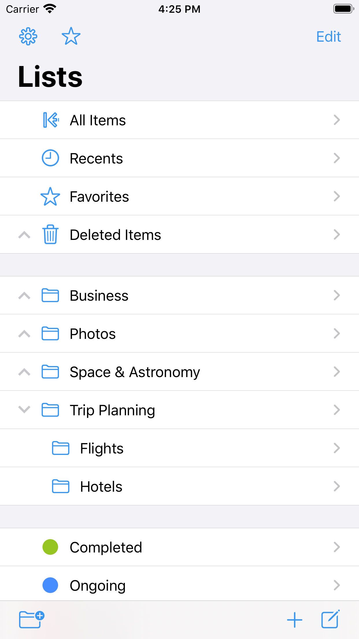 Папки (folders) позволяют создать свою иерархию для хранения информации. Как и в обычной папке, здесь внутри хранятся заметки.