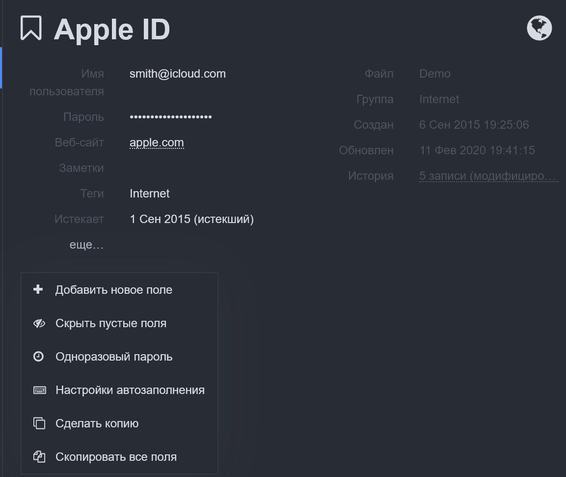 К тому же к паролям можно добавить пользовательские поля, которые можно сделать видимыми или скрыть их содержимое. Сам пароль можно пометить как одноразовый, или указать параметры автозаполнения.