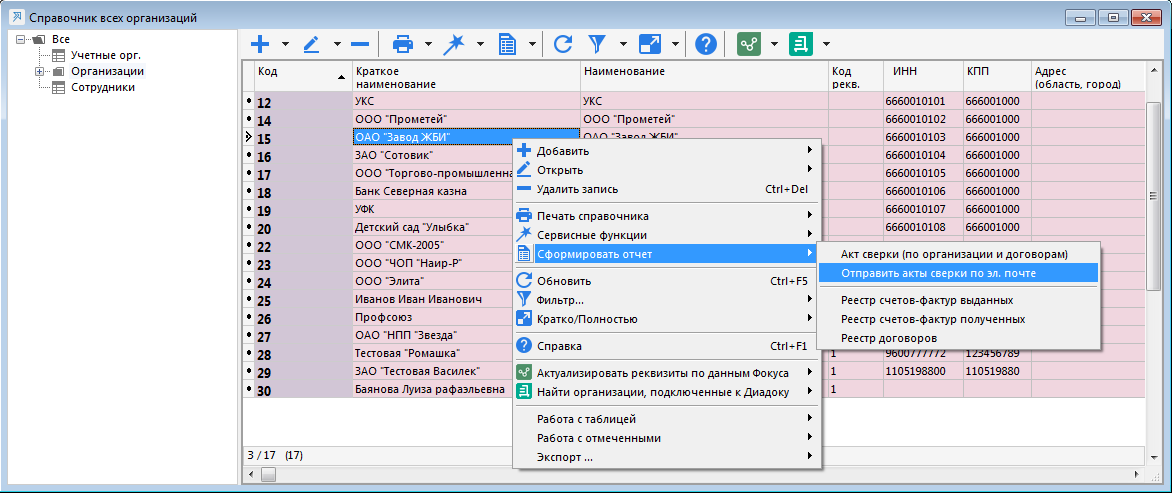 Массовая отправка актов сверки
