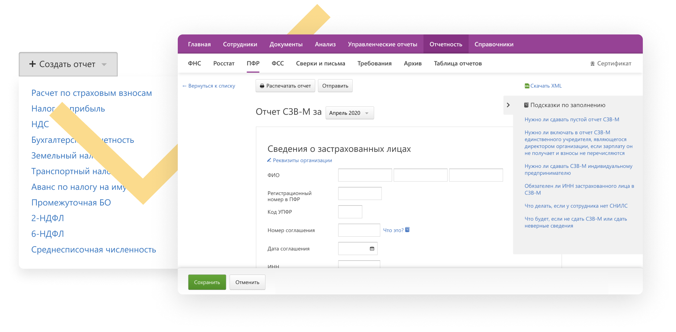 Сервис осуществляет проверку на этапе занесения данных, что позволяет сдавать отчёты с первого раза. Самое удобное в сервисе это то, что он не требует установки, не занимает место на компьютере и для начала работы нужен только интернет.