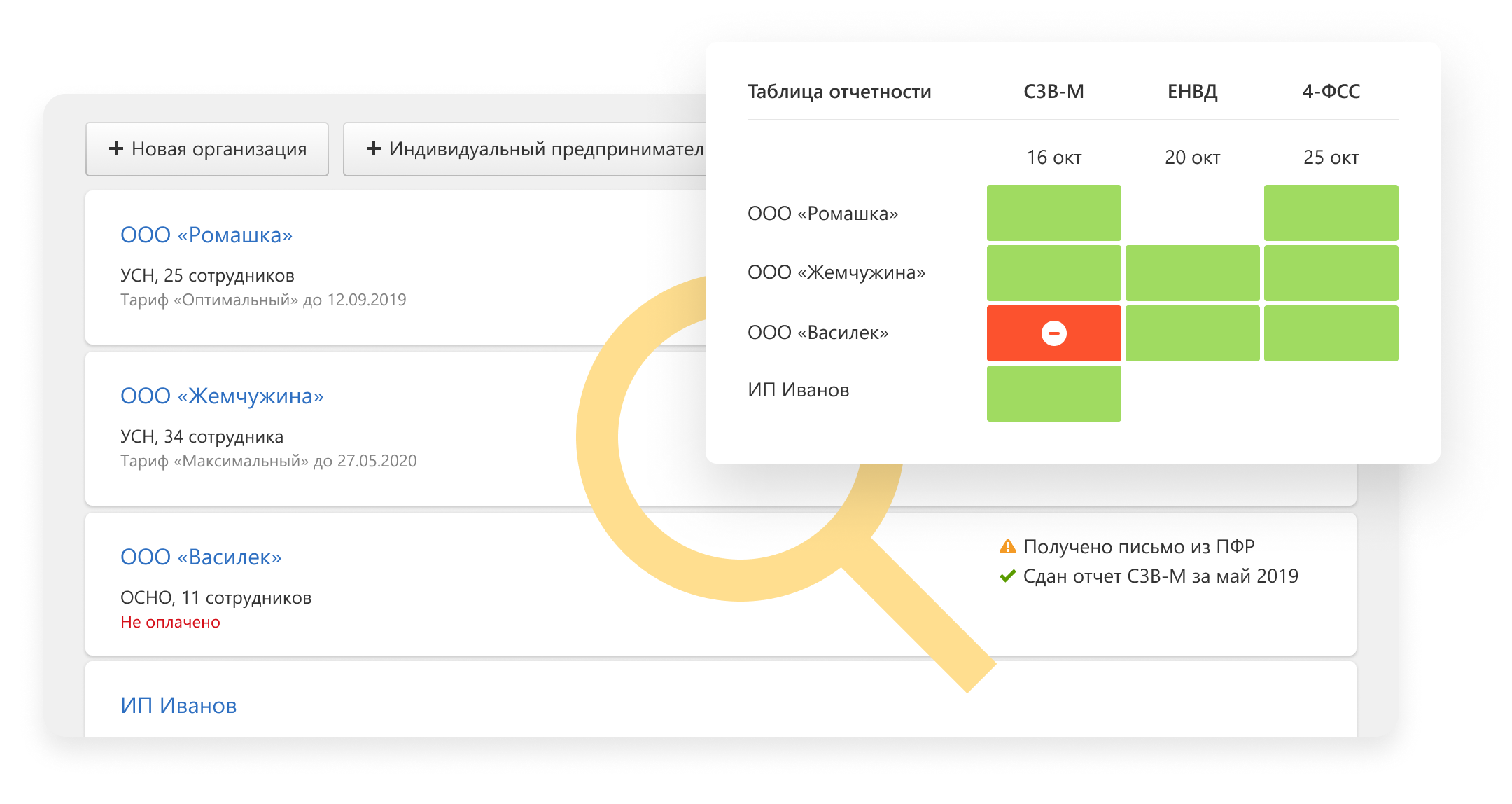 В Контур.Бухгалтерия можно вести несколько организаций, но в каждой лимит — максимум 100 сотрудников. Сервис полезен для: