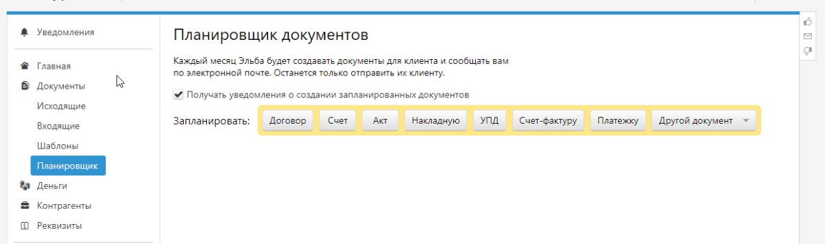 Также можно настроить ежемесячное автосоздание документов. От вас потребуется только отправить такой документ клиенту.