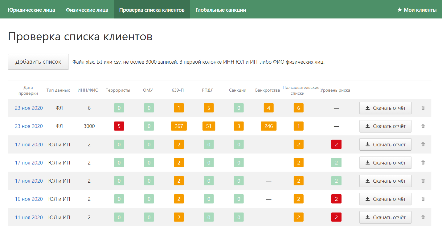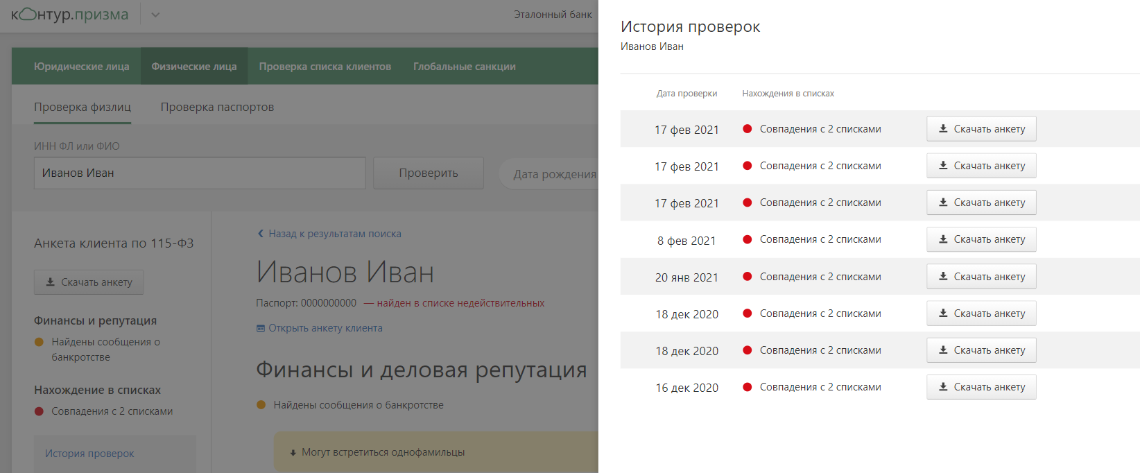 Контур.Призма сокращает количество ручной работы, проверяя клиентов по спискам, прописанным в законодательстве по ПОД/ФТ: