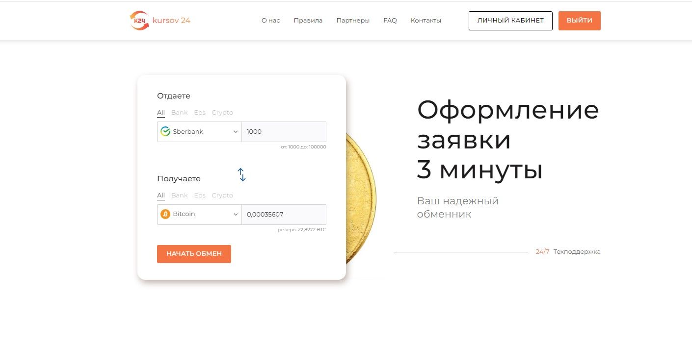 Kursov 24 — русскоязычный онлайн-сервис для обмена электронных валют в автоматическом режиме.