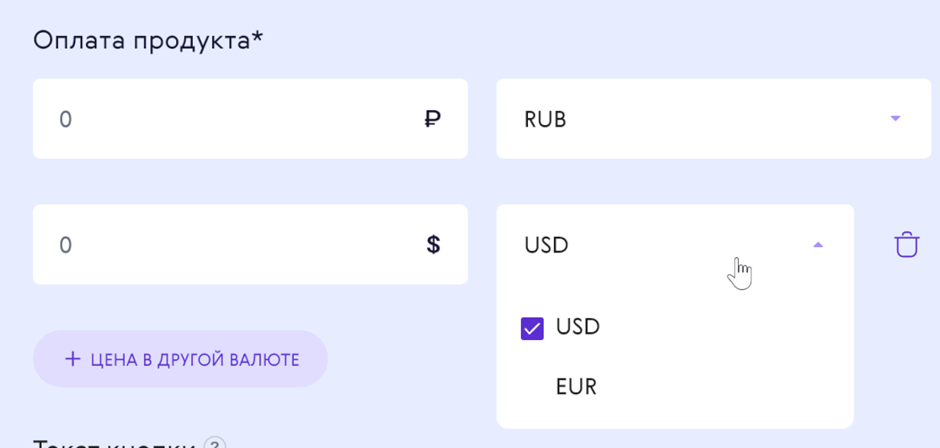 Также нужно указать его стоимость. Поддерживаются цены в рублях, долларах и евро. При этом вы можете указать стоимость во всех трёх валютах одновременно.