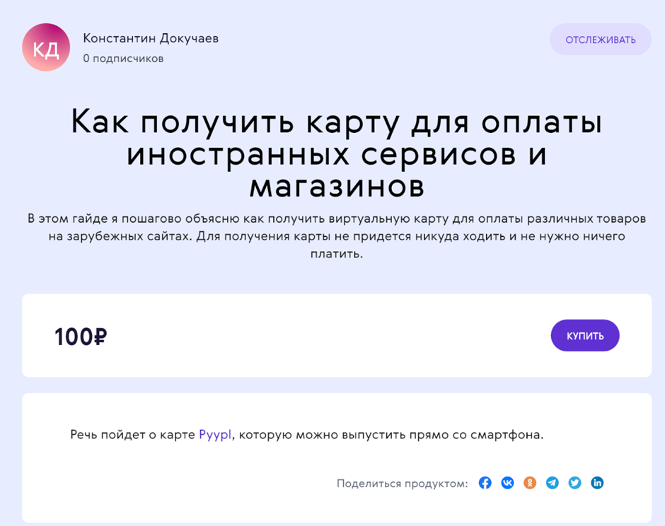 После чего продукт можно сразу опубликовать или сохранить, если вы ещё не уверены в его готовности. По этой ссылке и на скриншоте ниже можно посмотреть на пример страницы готового продукта.