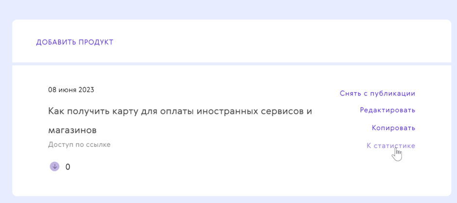 Вы, как автор, можете отслеживать статистику по всем продуктам, редактировать их и копировать.