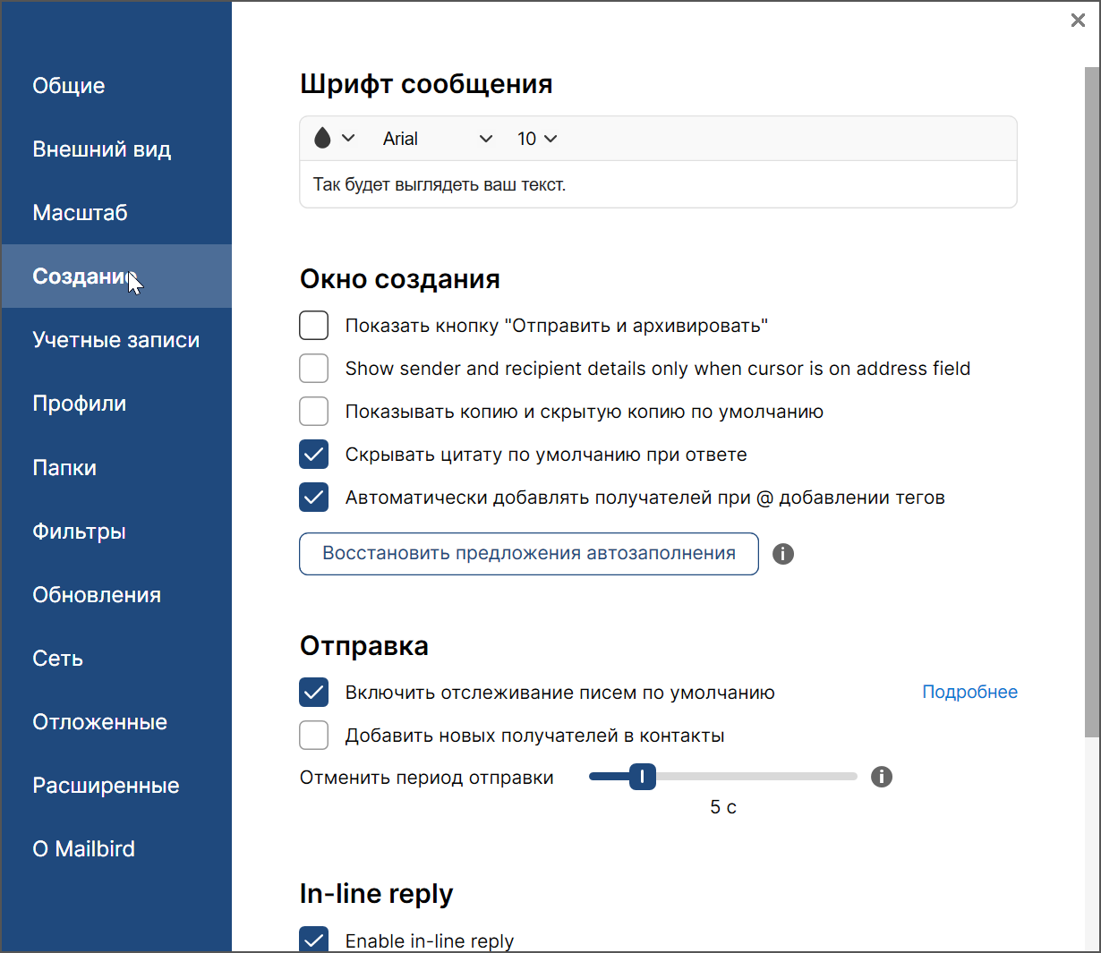 Mailbird не очень сильно доступен для кастомизации. Вы не можете кардинально поменять интерфейс, но всё же можете настроить под себя различные основные параметры.