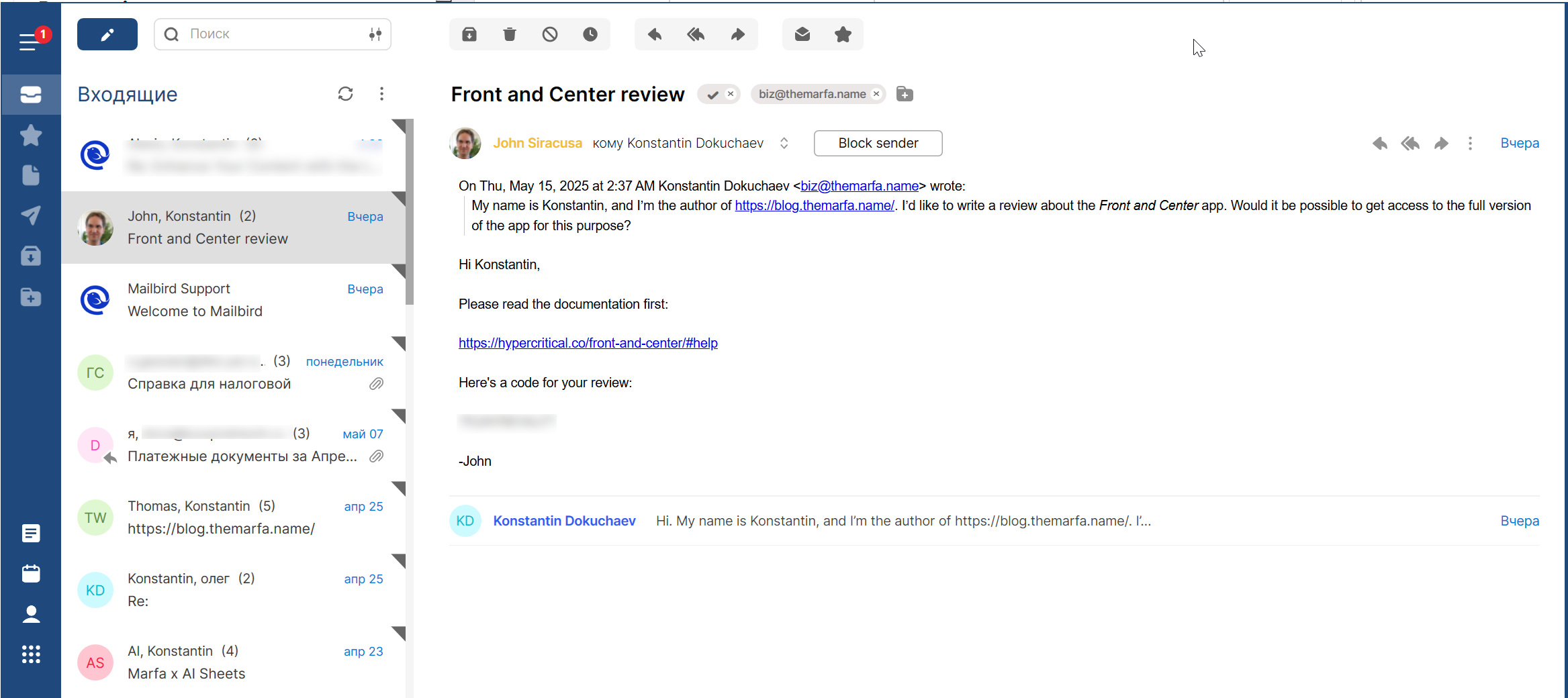 Конечно, в Mailbird есть и все остальные базовые возможности почтовых клиентов, о которых я не вижу смысла рассказывать отдельно. Пересылка писем, отправка в спам, блокировка отправителя и прочее.
